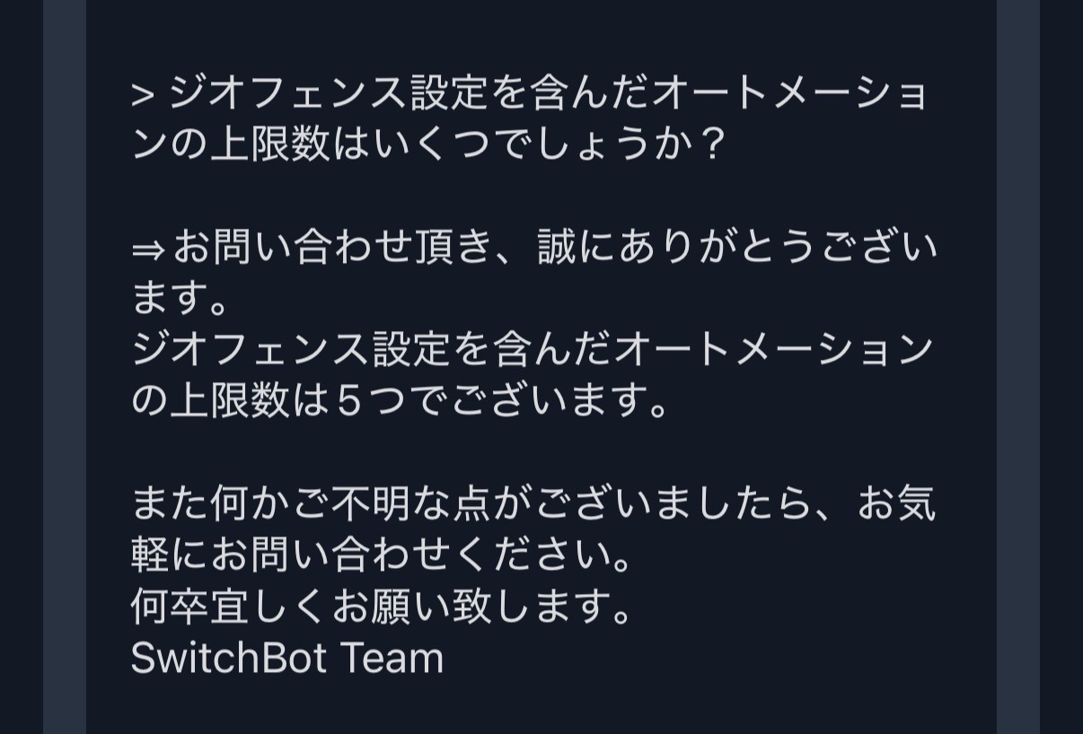 Switchbotではジオフェンス設定を含んだオートメーションは5つまでしか作れません